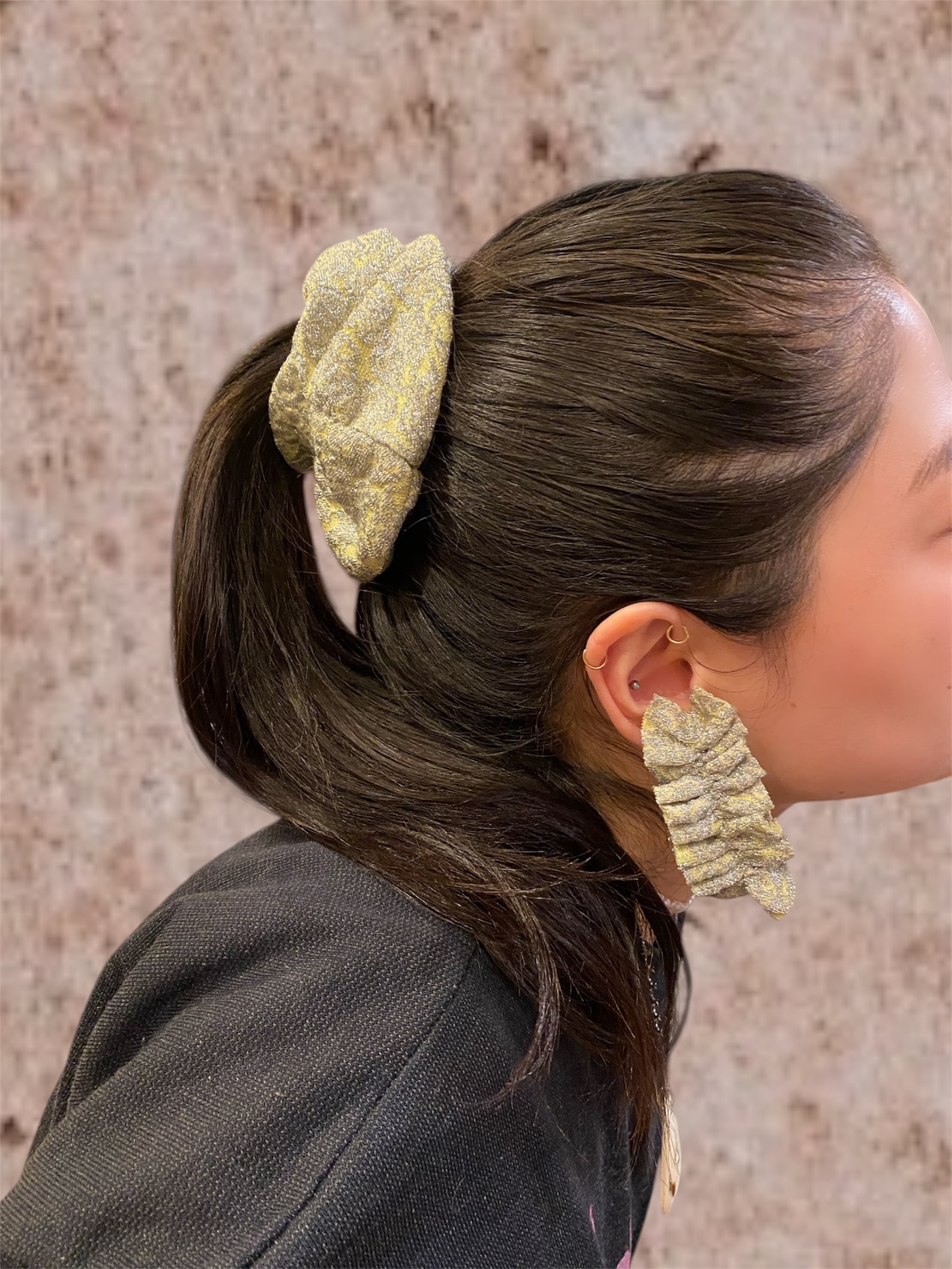 glittery scrunchie and earings